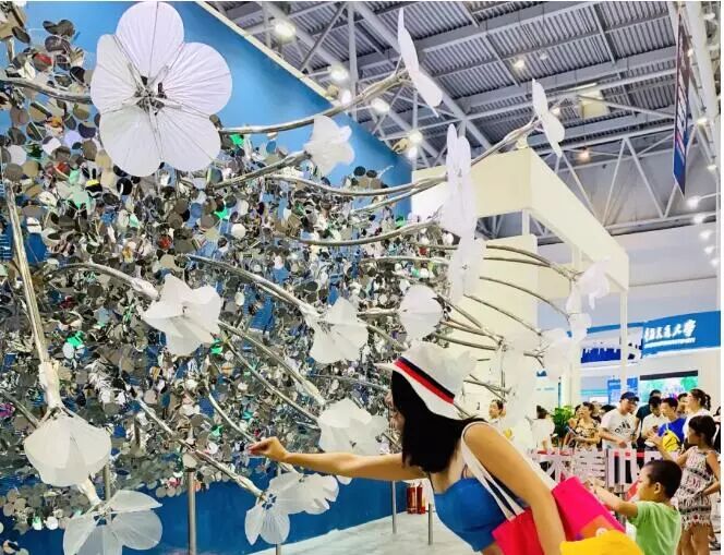 童話里的公主步步生花、落淚成珠。在智博會上,互動花開裝置給予你公主的神奇魔力,手一靠近花朵就綻放,把手拿開花朵又合上了??萍紴榛ǘ滟x予情緒和行為能力,成功實(shí)現(xiàn)了與人的互動,給生活添上一份奇妙浪漫。