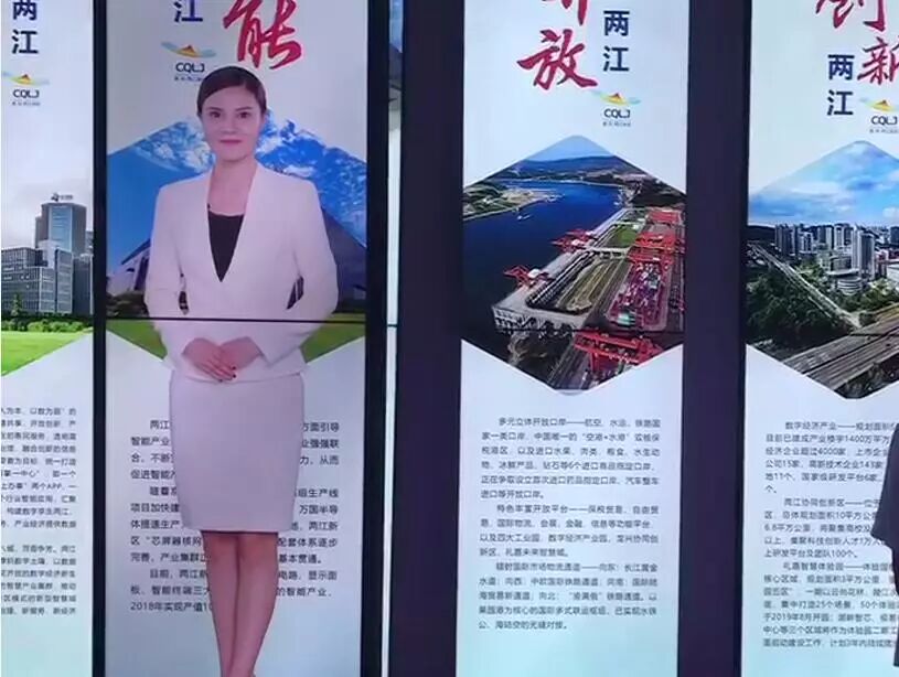 虛擬主持人是運(yùn)用三維動畫、人機(jī)互動紅外感應(yīng)處理、大屏幕顯示(如LED屏、全息透明膜等)、投影機(jī)背投等技術(shù)來實(shí)現(xiàn)。主持人可以是提前真人拍攝好的,也可以是完全三維虛擬建模,大大節(jié)約了人力成本,被廣泛應(yīng)用于展會、博物館、校史館等場所。